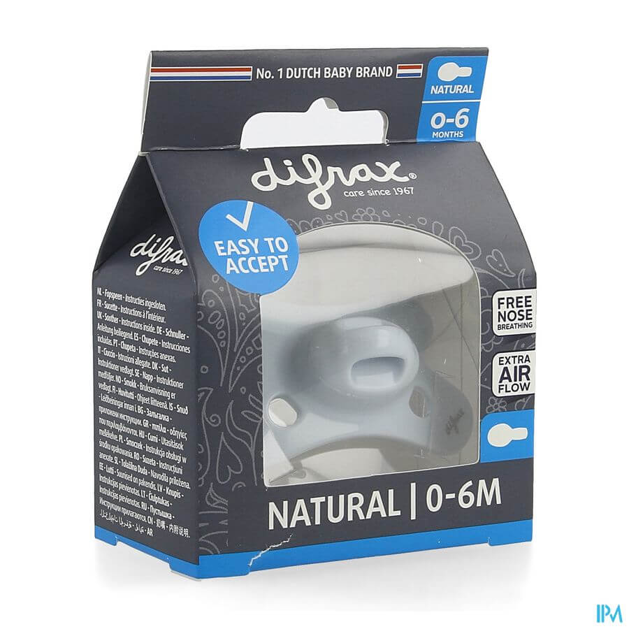 La forme arrondie de la sucette est idéale pour les enfants qui n'ont aucun mal à la faire pivoter tout seuls. La taille de la collerette et la taille de la téterelle ont été spécialement développées pour les nouveau-nés jusqu'à 6 mois.